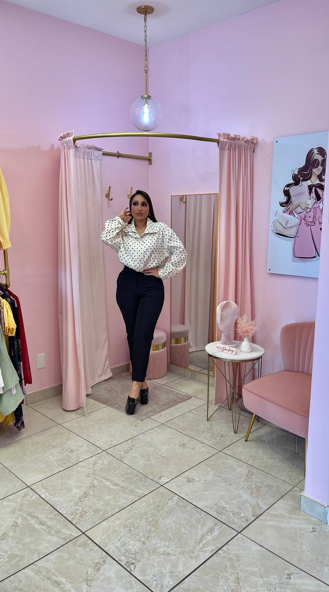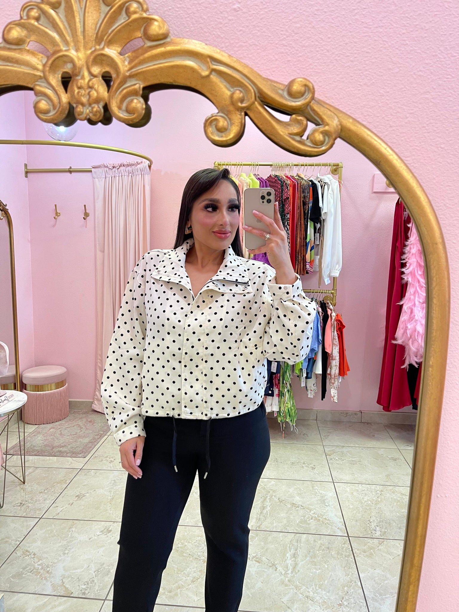 Polka dot puffer long sleeve jacket