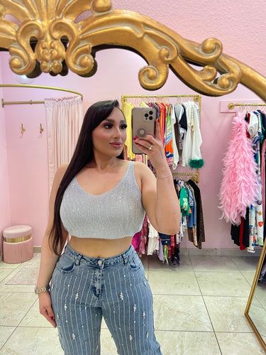 "Ginny" Metallic Rhinestone Crop Top
