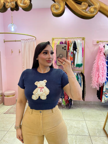 "Moochi" Navy Bear Cropped Tee